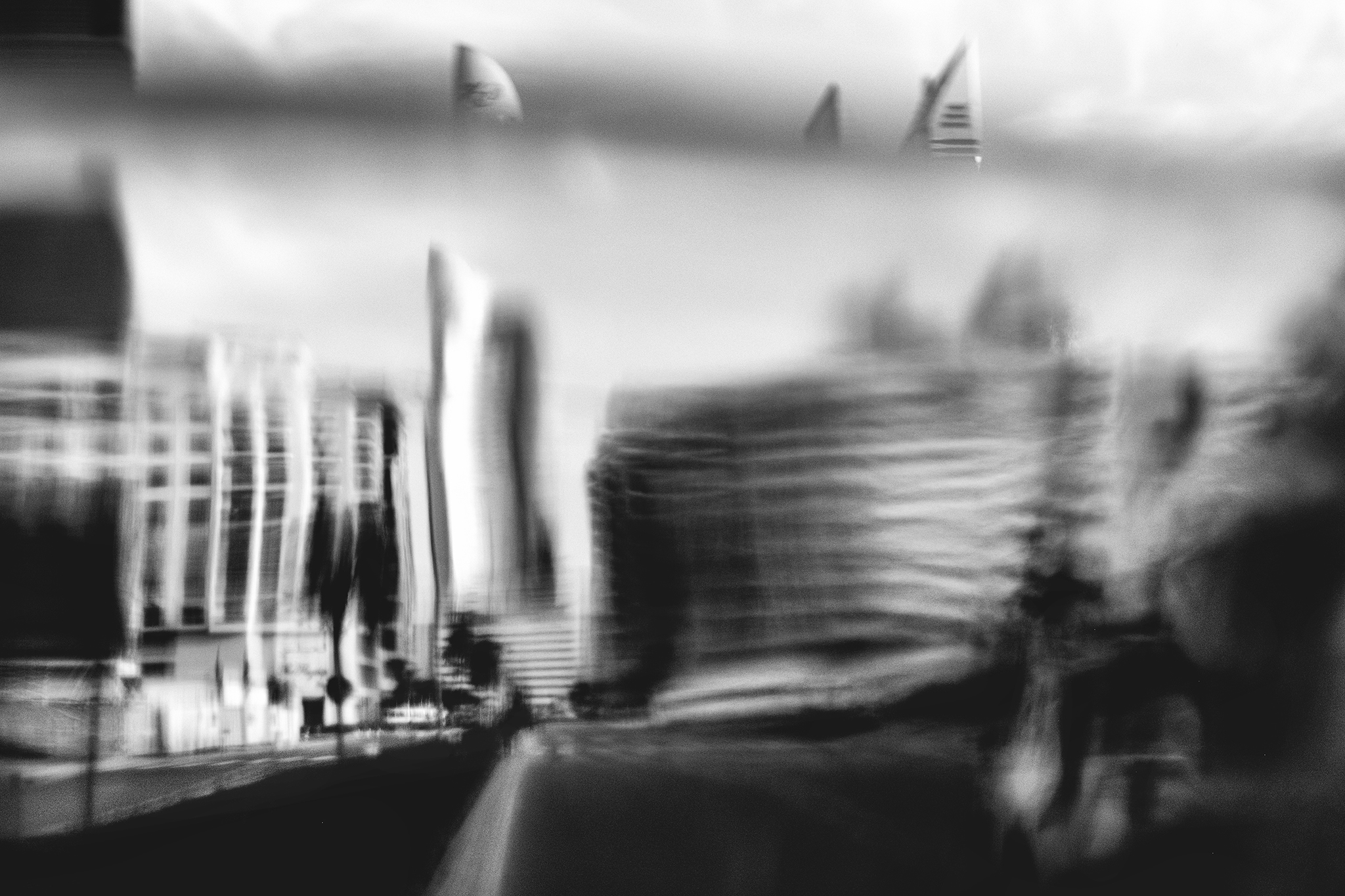 Ten sposób fotografowania jest bliski streetowi, ale bardziej wewnętrznemu niż reporterskiemu. Nie chodzi o ludzi ani o wydarzenia. Chodzi o energię miejsca. O tempo, które wchodzi pod skórę. O miasto, które nieustannie pędzi do przodu i nie ogląda się za siebie.